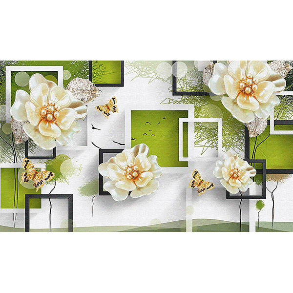 Фотошпалери Білі квіти на тлі чорно-білих квадратів